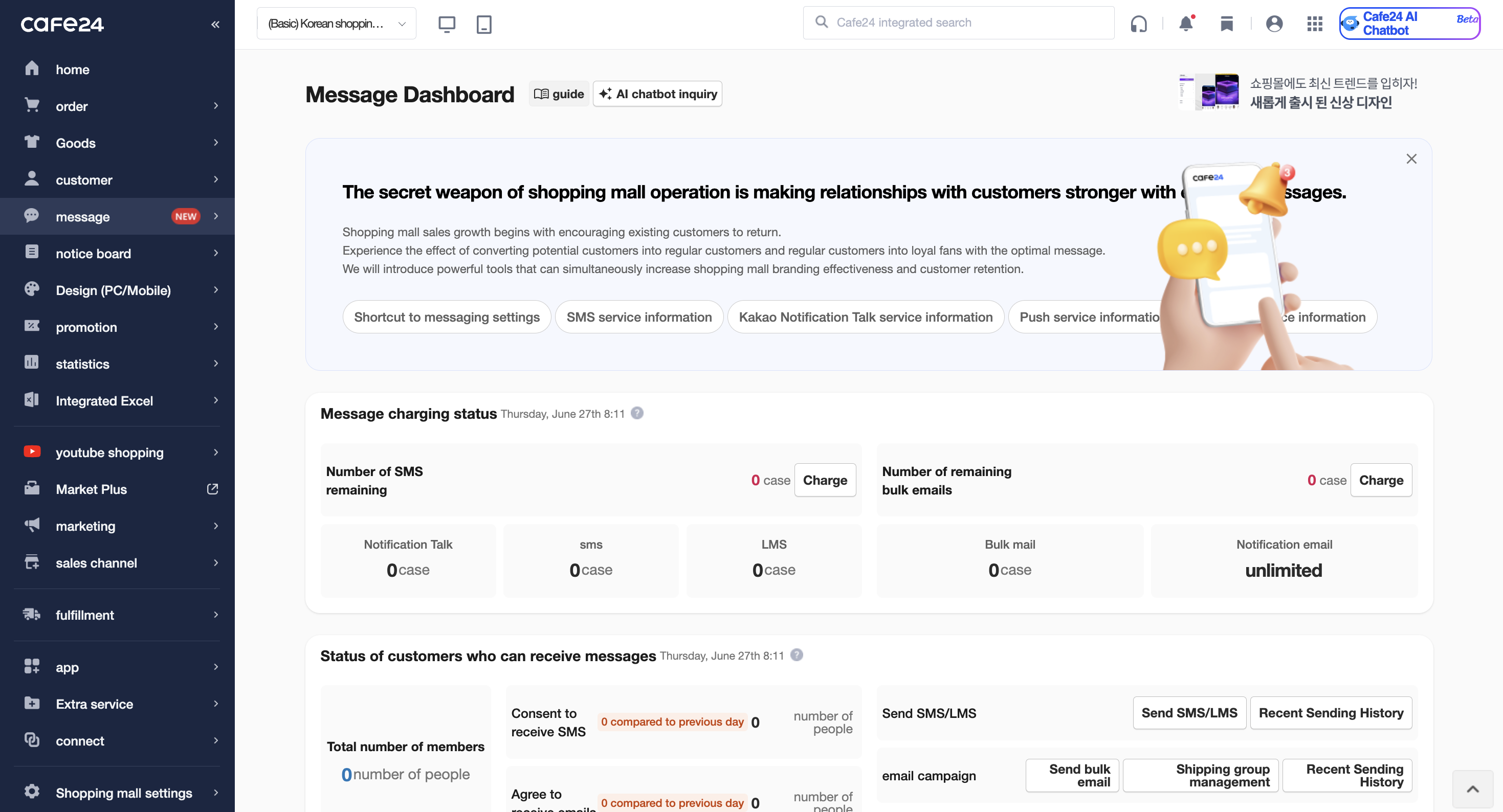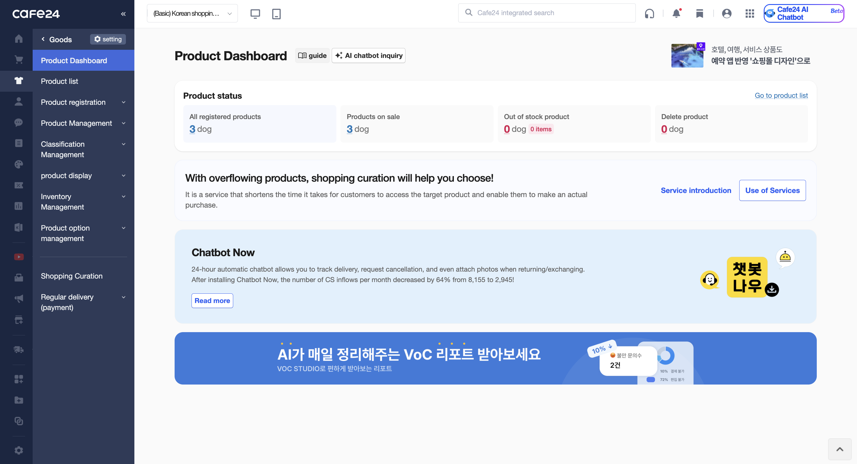 Cafe24 is a global success platform that provides a one-stop business environment for global e-commerce merchants so that they can achieve continued growth by focusing on their creativity. Cafe24's platform has established an e-commerce ecosystem with 2 million merchants and various global e-commerce service providers in areas like payment, shipping, and marketing.