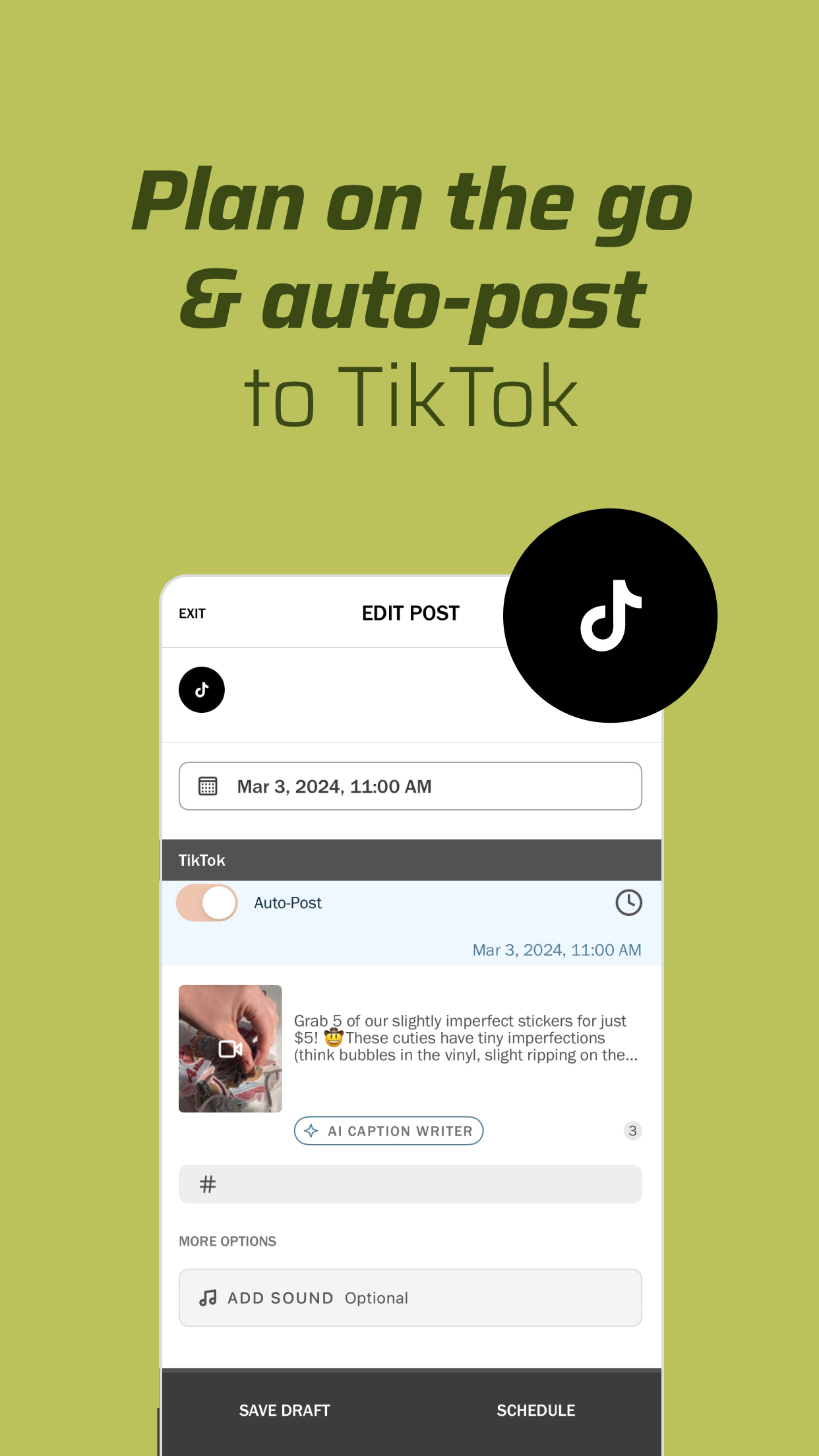 With the Planoly integration for TikTok, you can visually plan, manage & auto-post all of your TikTok content. Planoly’s visual planning calendar makes it easy to see your upcoming scheduled content and find content inspiration for your next post. Say goodbye to endless TikTok drafts and hello to a better way to stay organized & consistent on TikTok.