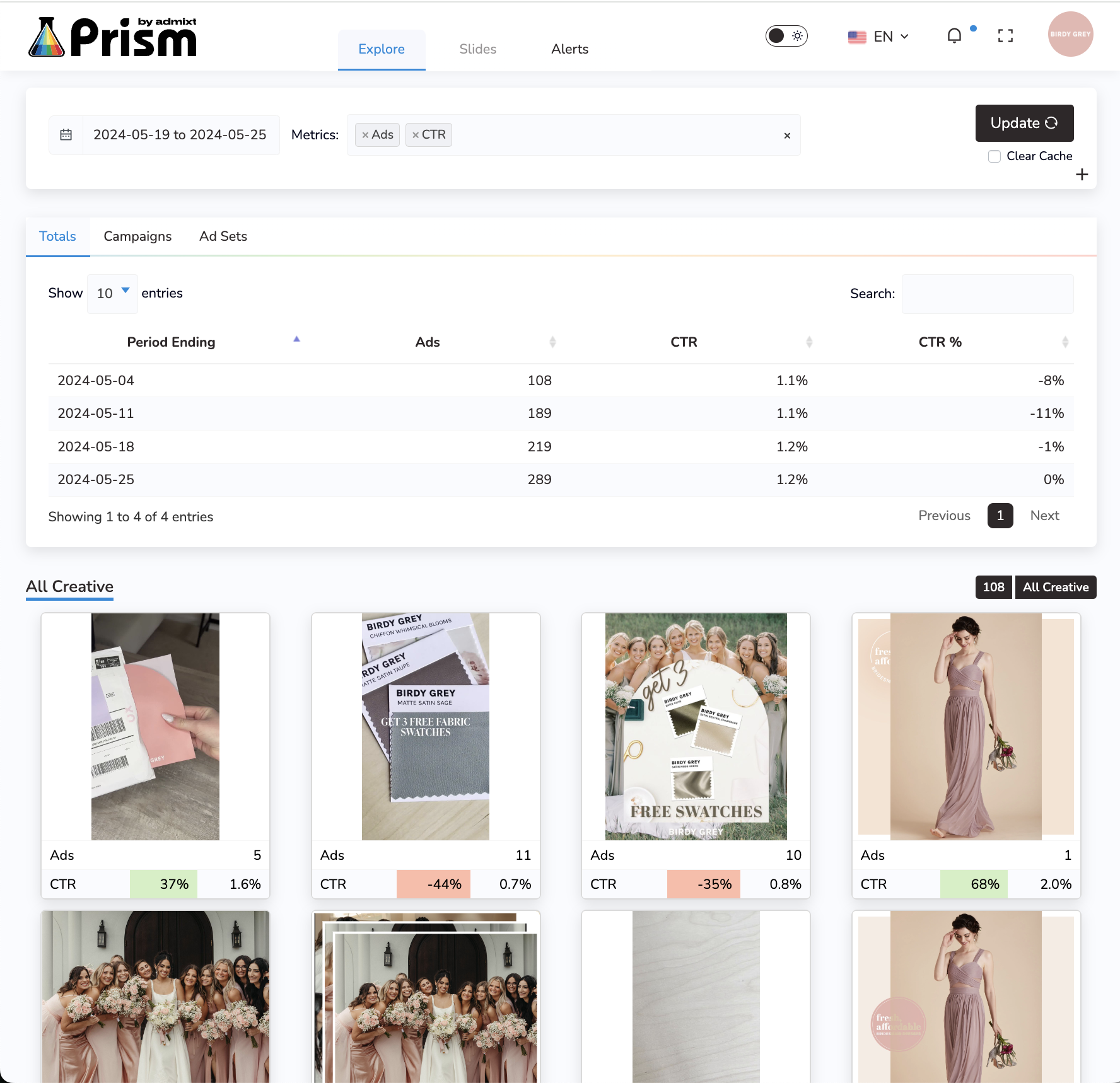 Full access to Prism Creative Analytics